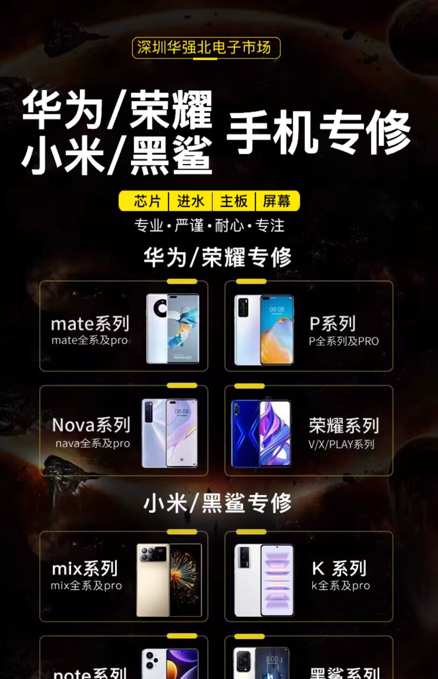 手机维修华为荣耀小米黑鲨主板oppo魅族vivo红米换屏苹果三星寄修