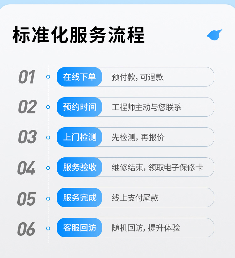 上门费50元,线上预约具体价格见价格表,或工程师上门后按照统一标准报价